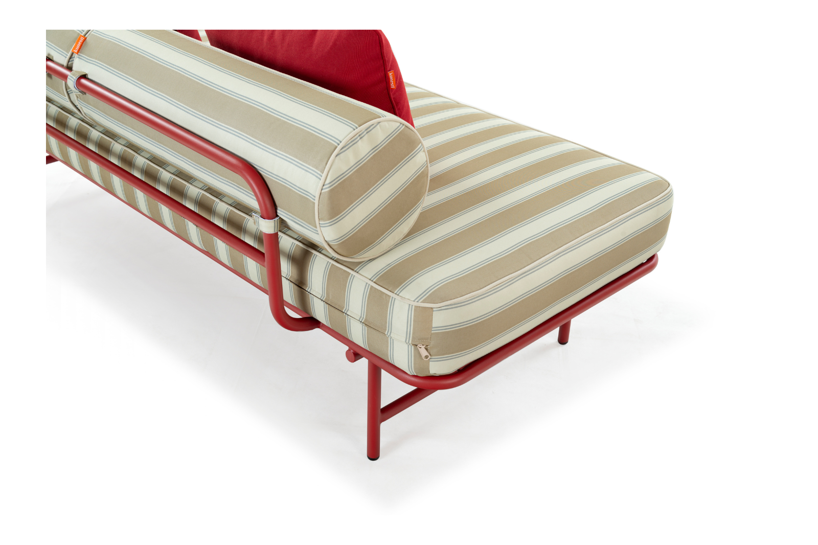 The daybed from the "Gossip Time" collection is the perfect place to relax in style and versatility. Subtle beige stripes in the upholstery create an elegant backdrop for the bold, burgundy legs, making this piece a distinctive addition to your patio or garden. Imagine an afternoon spent on a comfortable seat, surrounded by sunshine and your favorite people, sharing the joys and worries of everyday life. And when you feel like taking a nap or relaxing, the daybed easily transforms into a comfortable place to lie down. This piece of furniture invites closeness, open exchange of ideas, and sweet laziness.