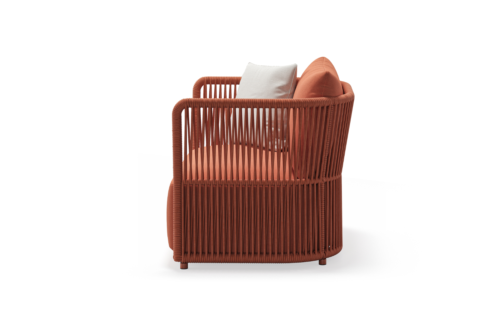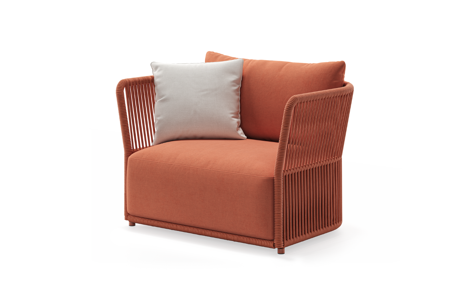 Swoją formą konsekwentnie dodaje przestrzeni odwagi i optymizmu. Stanowi wyjątkowo wygodne zaproszenie do relaksu, gdzie rudy kolor i plecione oparcie tworzą unikalny charakter.