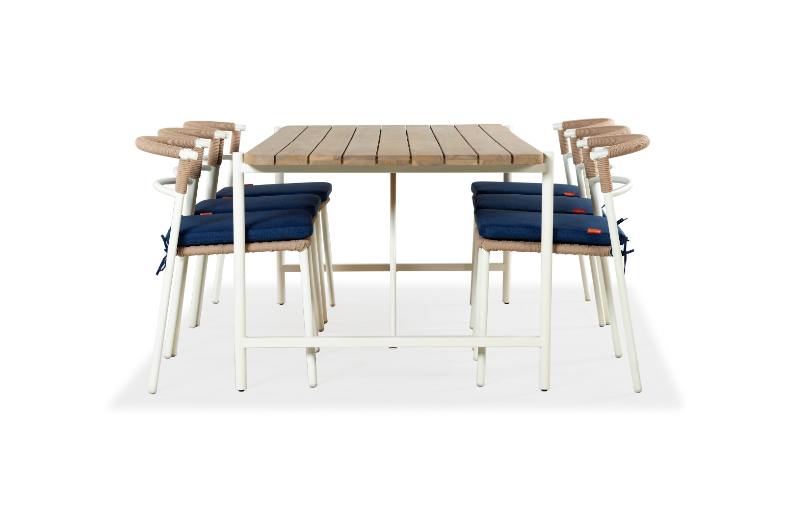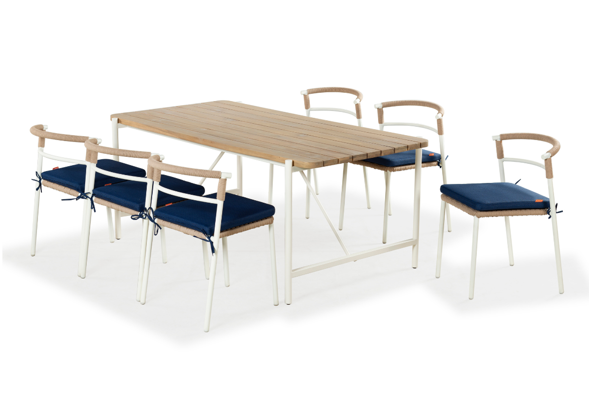 Minimalizm i wyrafinowana prostota. Zestaw jadalniany, który nadaje przestrzeni elegancki, nowoczesny charakter. Stworzony do długich kolacji i rozmów pod gołym niebem.